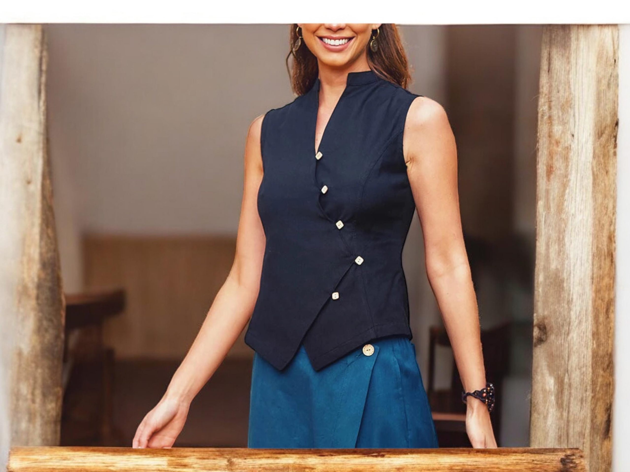 Be the first to review “Elegant Cotton Blouse Sleeveless Asymmetrical”