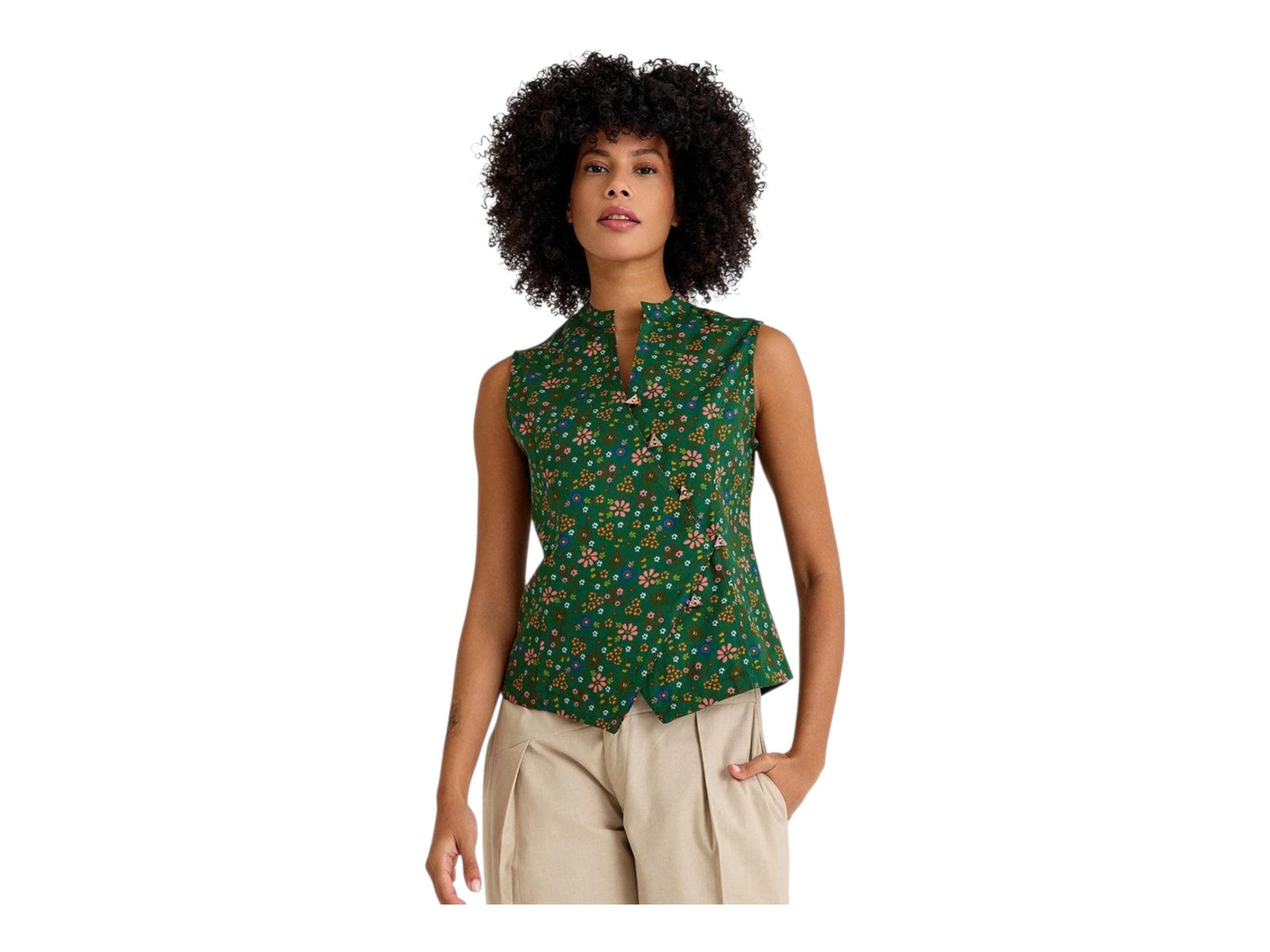 Elegant Cotton Blouse Sleeveless Asymmetrical