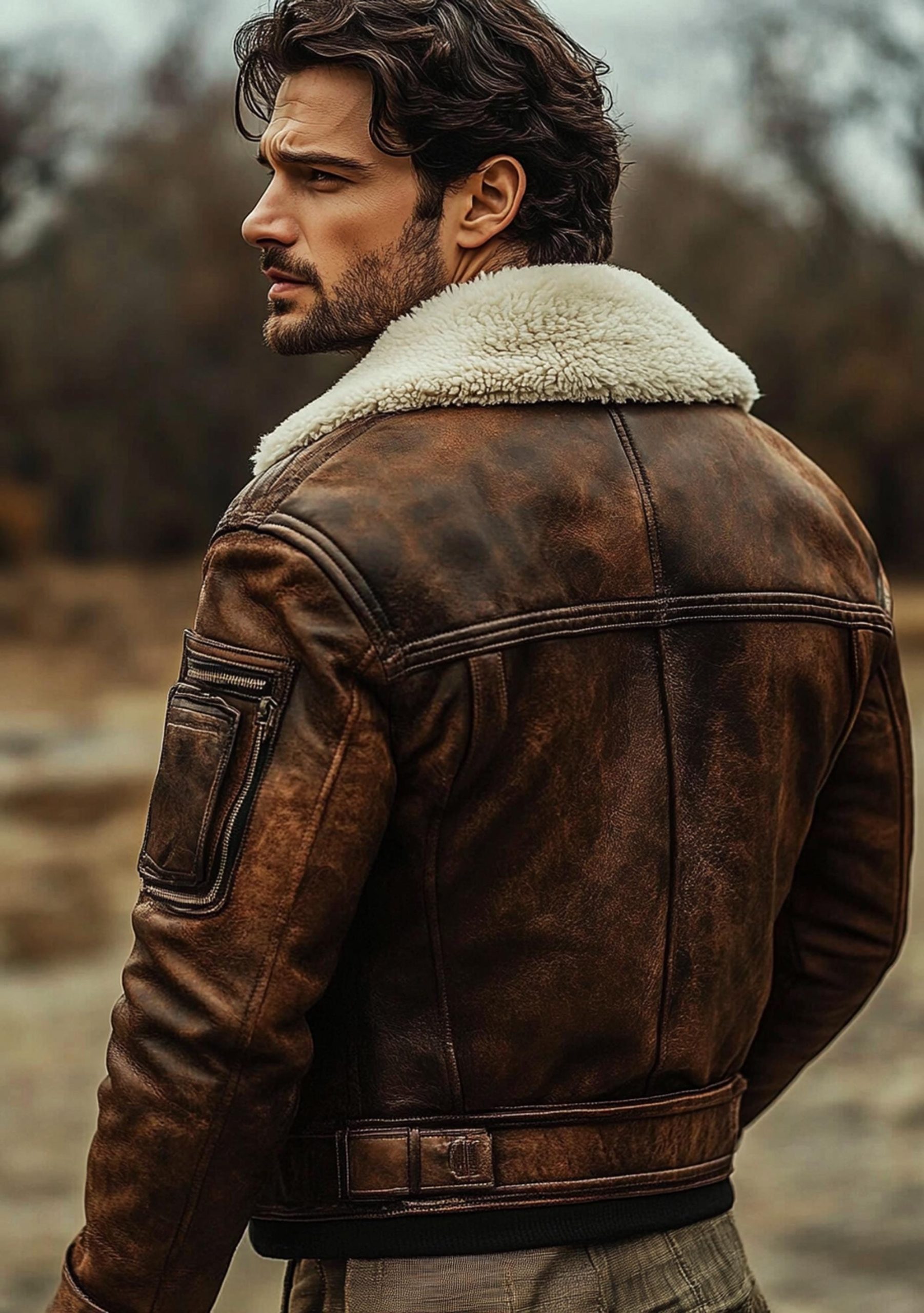 Leather Jacket Men’s Handmade Bomber Fur Shearling Distressed Brown Biker Jacket Sheepskin Leather Jacket